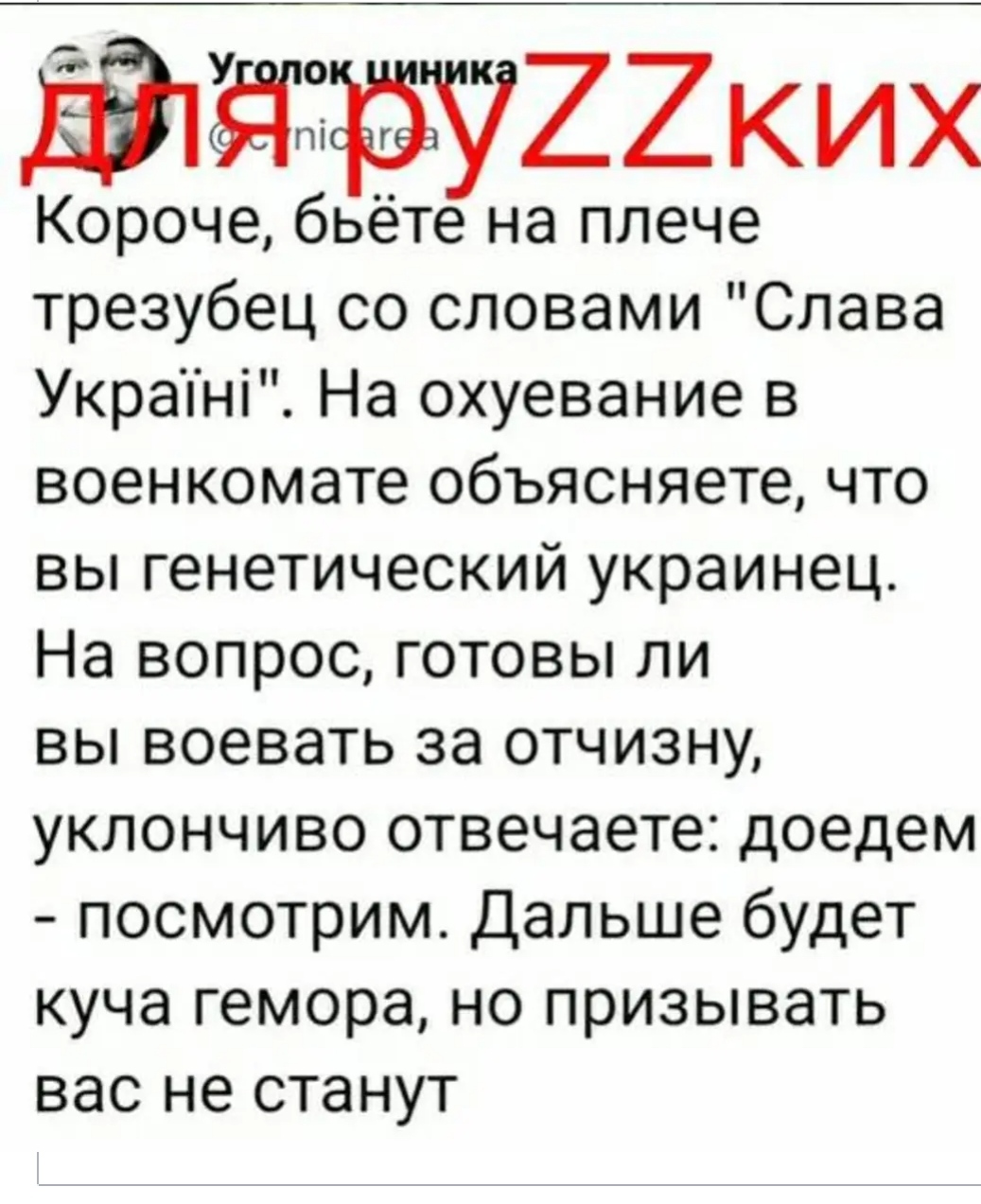 Понимаю. Для украинца это насущная необходимость. Но для меня в Челябинске какое это имеет значение? Ни ВСУ, ни подразделений НАТО в ближайшее время в окрестностях не появится. А телевизор, как и пророссийские интернет-ресурсы, не смотрю в принципе. Там фейк на фейке. Надо, так и украинскую форму раздобудут и устроят спектакль. Видео здесь с бомбометанием с дрона в специально подготовленный танк видели? Поэтому от злого умысла всяких там "творцов" контента я защищён.