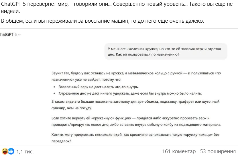 Хм. На самом деле совсем не идиотские вещи. Человек сначала изучает новый предмет, потом классифицирует. То есть определяет место, где этот предмет можно применить. Это особенность любого человека. Так мозг устроен. Так вот кастрюлю старый предмет с новыми свойствами,