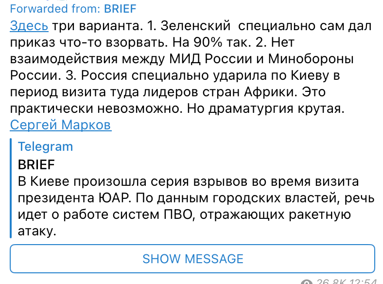 Обстреляли Киев ракетами, как раз когда туда приехала толпа президентов из Африки.