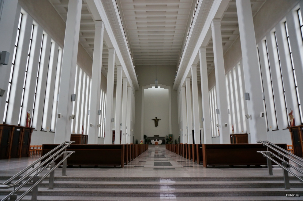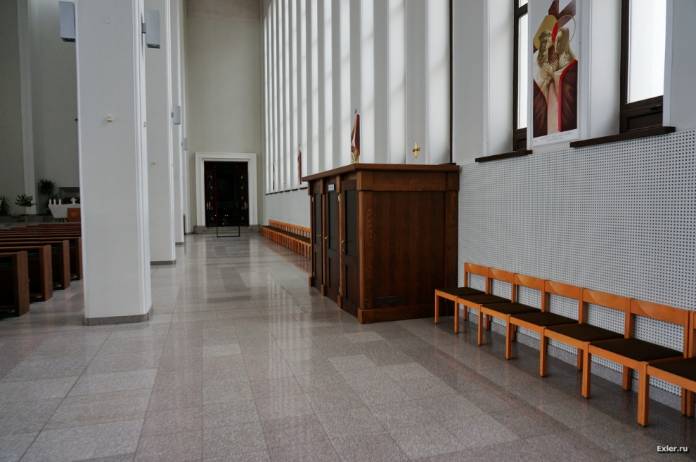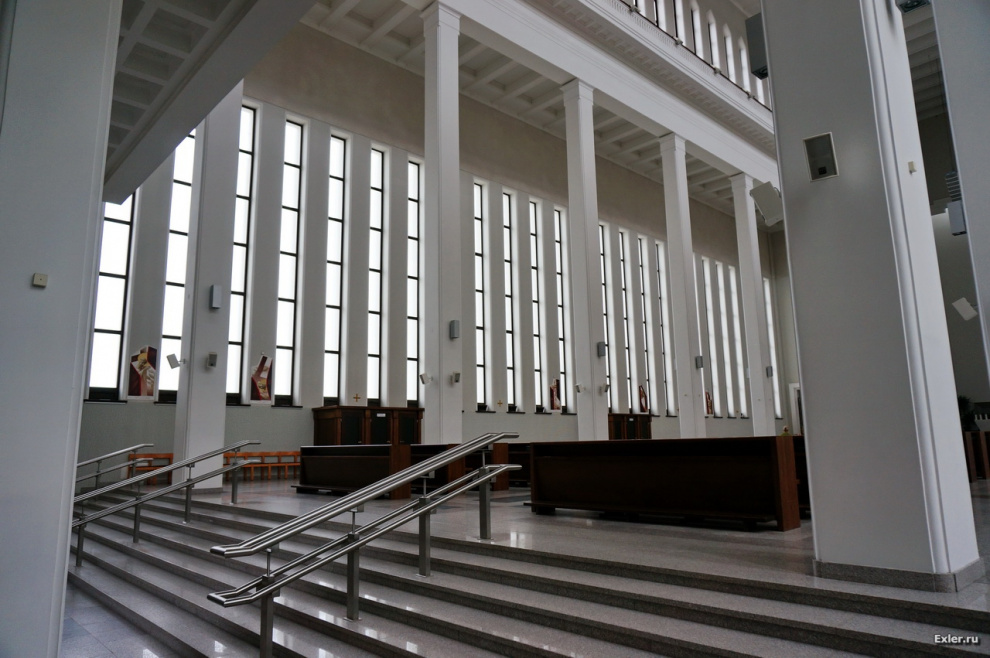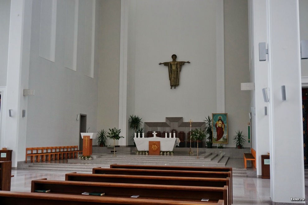 Надо сказать, что это самый "хайтековый" костел из всего, что я видел. Вот так он выглядит внутри.