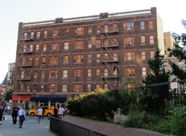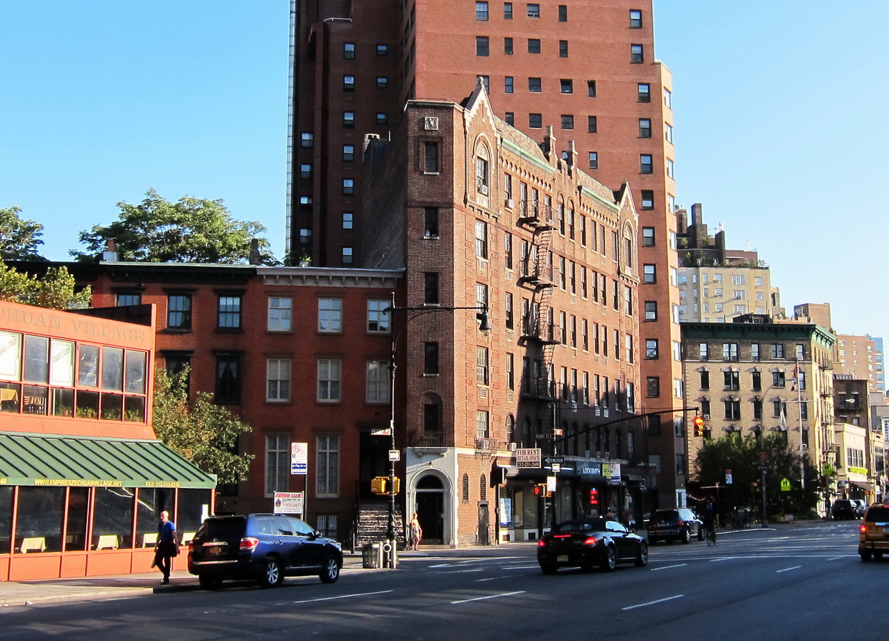 А чуть левее камера не взяла - моя любимая кофейня - Gregory's Coffee. Капучино делают - Старбакс и Кофи Бин рядом не стояли. Также слева от пуговички бронзовый памятник сгорбленному еврею в кипе за швейной машинкой. Кому интересно, посмотрите документальный фильм Schmatta: Rags to Reaches - все про становление швейного бизнеса в Нью Йорке.