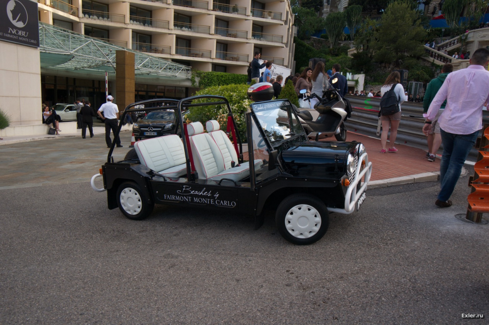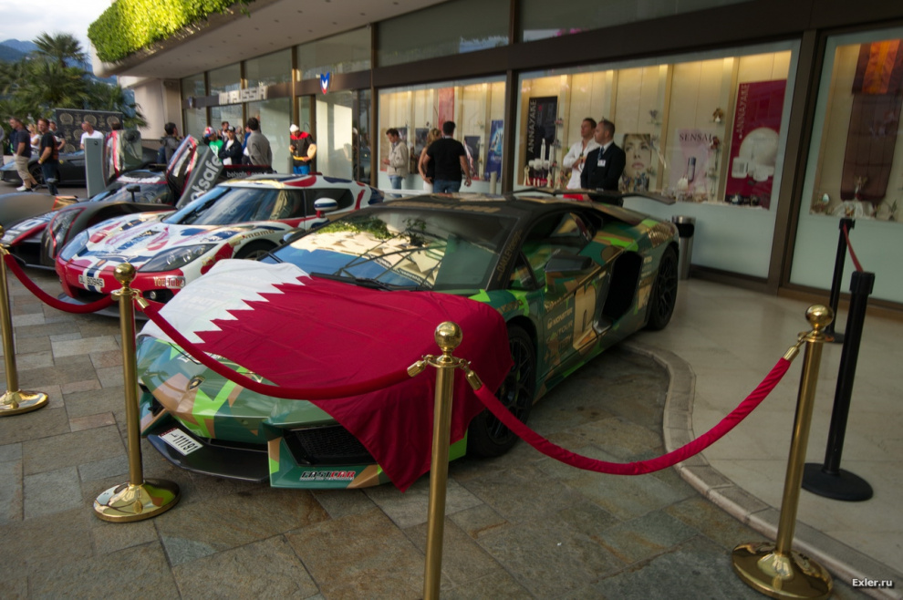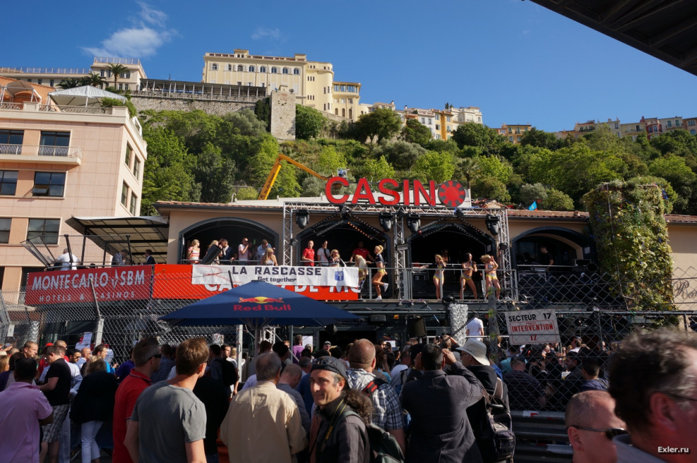 Вообще там на этой площадке было очень весело. Прямо перед отелем идет один из самых сложных поворотов "Формулы", и по этой дороге периодически подъезжали всякие суперкрутые тачки, дико ревя движком, заезжали ко входу отеля, красовались под приветственные фотовспышки гуляющих, после чего, снова дика взревывая движком, куда-то уезжали. Прям обстановка веселой автомобильной шизы.
