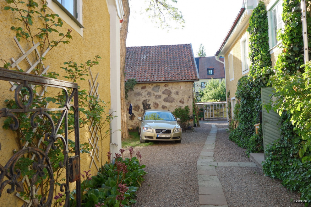 Трогательное соседство: автомобиль Volvo и чьи-то сохнущие подштаники. Идиллия. Кстати, Volvo нам там встречались на каждом шагу. Очень популярная в Швеции марка - видимо, поддерживают отечественного производителя. Я этого производителя также поддерживаю, хотя он для меня не отечественный.