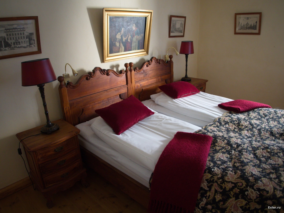 Номера также отделаны в старинном стиле, что особенно подчеркивает изрядно устаревшая модель телевизора в углу.