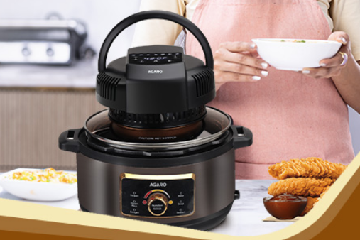 У кого такой отличной машинки нет, можно взять свою обычную мультиварку-скороварку и к ней прикупить крышку-аэрогриль (надевается на чашу мультиварки или любую кастрюлю), чтобы добавить хрустящую корочку: