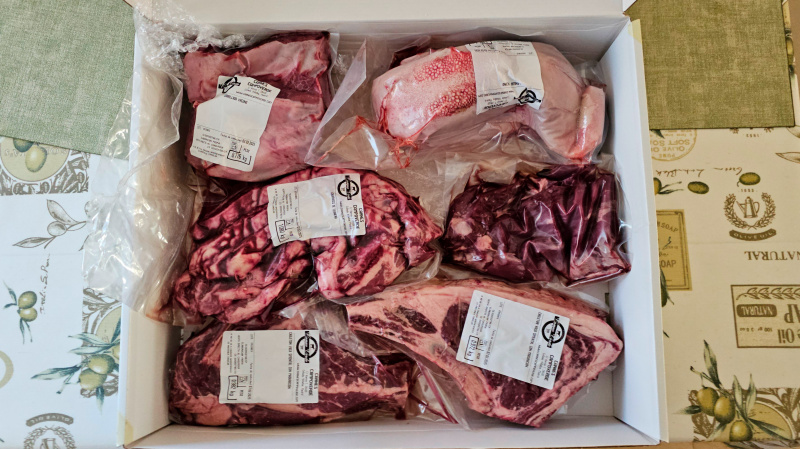 Приехала очередная посылочка от мадридского магазина Carnes Campo Verede - испанцам прям очень рекомендую, там можно купить такое мясо, которое толком не купишь в обычных магазинах. Я там уже несколько лет заказываю - обычно привозят вакуумированное и охлажденное через день после заказа.