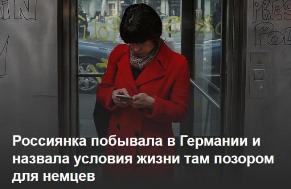 Российская путешественница, блогер и комсомолка побывала в Германии и решила открыть глаза соотечественникам на то, в каком кошмаре живут немцы. Об этом даже на Ленте написали, сославшись на шокирующую заметку путешественницы в "Дзене".