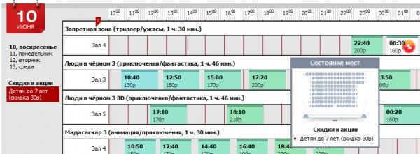 А на что скидка действует? На фильм, который дети до 7 лет обязательно должны посмотреть - на зловещий триллер "Запретная зона", который идет только в 22:40 и 0:30. Налетай, детишки, налетай!