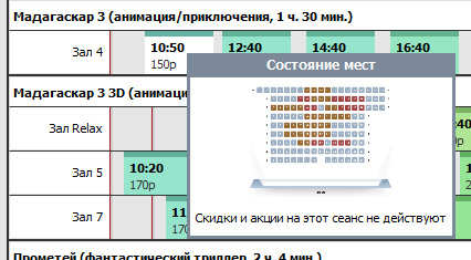 Кстати у них иногда они для пенсионеров действительно льготные билеты продают (рублей по 30-50), на утренние сеансы.