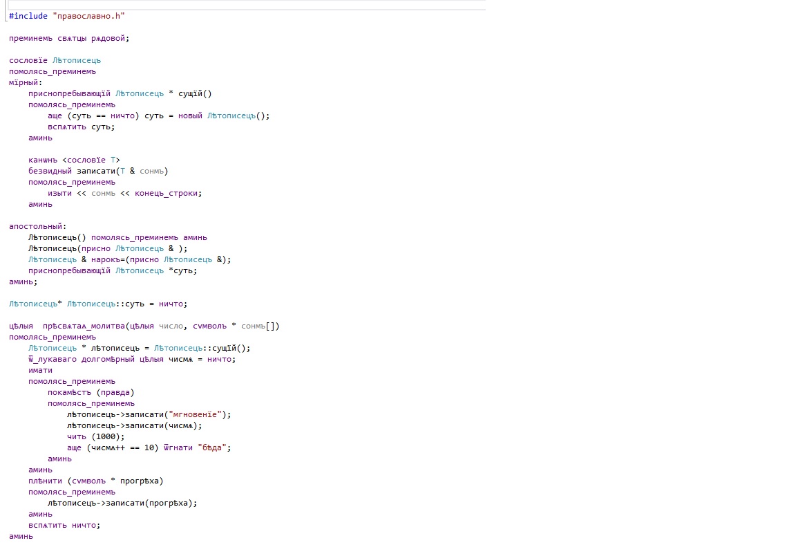 Я когда писал диплом в одном из "ящиков", там программировали на языке Modula-2, где местные идиоты все операторы этого языка сделали кириллицей. WriteLn - это был ВритеЛТ, Goto - Готу, While - Вхиле и так далее. Как же я матерился, когда пришлось писать программу для диплома на этом уродстве...