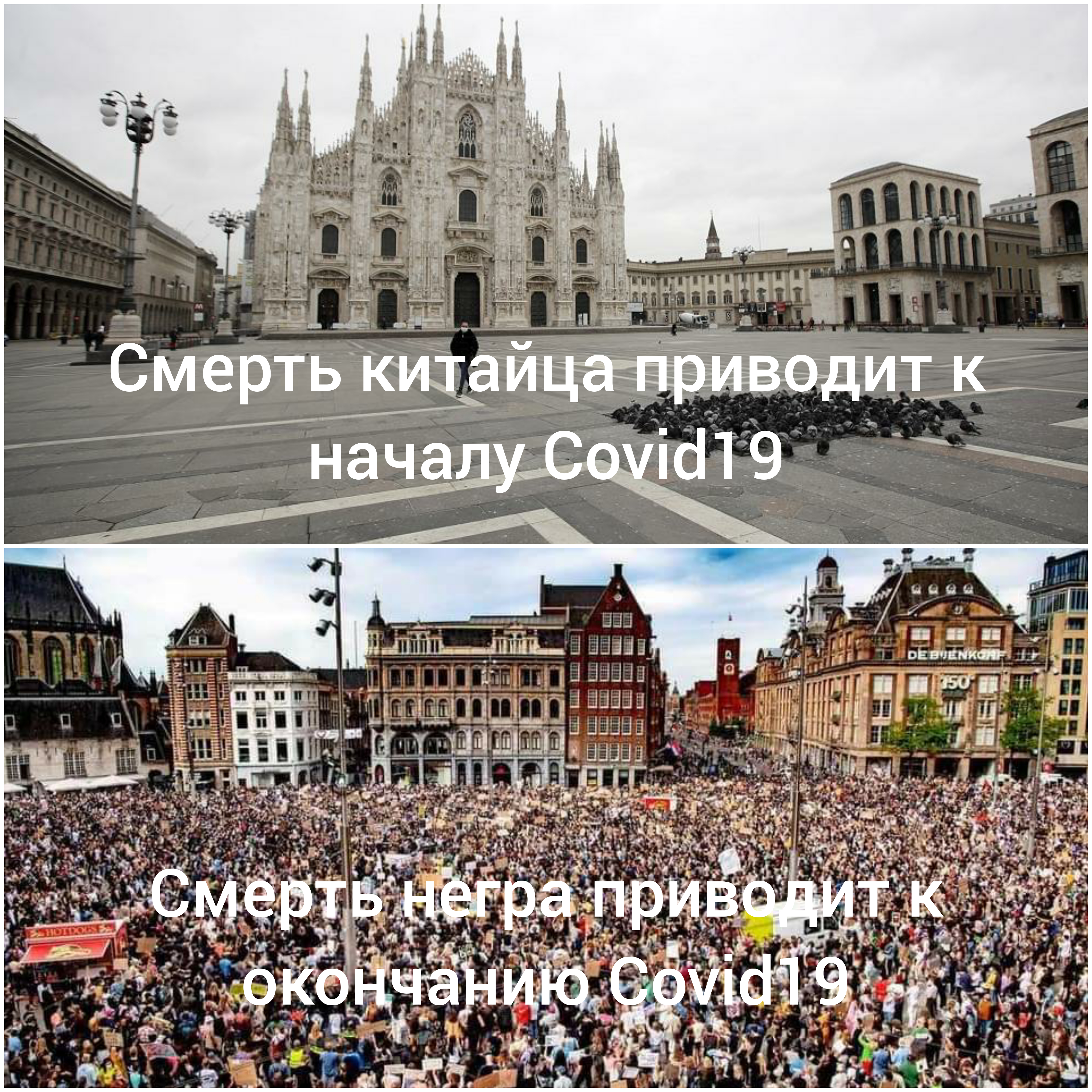 "Благодаря протестам карантин в Америке внезапно закончился, потому что все либеральные мэры, кричавшие до этого “Больше трёх не собираться!”, стали поддерживать демонстрантов и кричать вместе с ними “Свобода! Равенство! Братство!” и другие коммунистические лозунги. CNN всё воскресенье показывало только протесты и ни разу не показало коронавирусную статистику, а тем временем оказалось, что погромы были устроены не белыми националистами и даже не русскими агентами, а горячо любимой всеми СМИ экстремистской организацией Антифа, у которой карантин был уже давно, потому что все её члены всегда носят маски на лицах — к тому же, многие из них специально для этих “протестов” приехали в Миннеаполис и другие города."