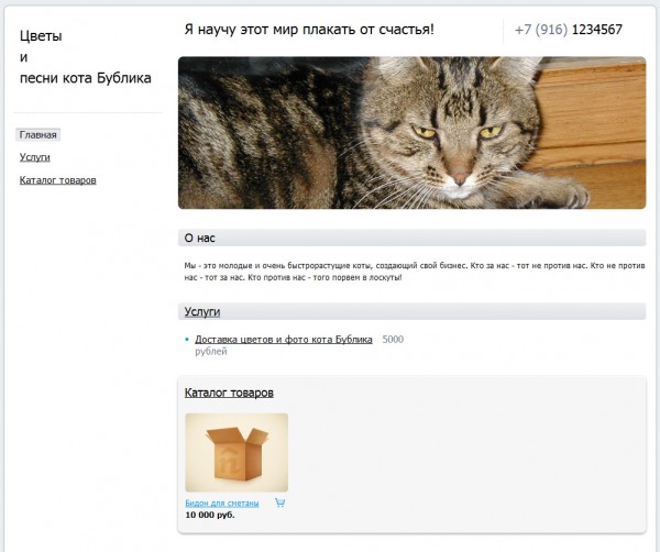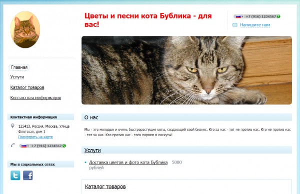 В редакторе сделано все, чтобы максимально облегчить вам процесс создания сайта. Вы можете добавлять и редактировать данные о фирме, контактную информацию, создавать каталог видов услуг, которые сразу можно будет заказать на сайте, а также создавать каталог ваших товаров с ценами, и эти товары посетители сайта смогут класть в корзину и заказывать.