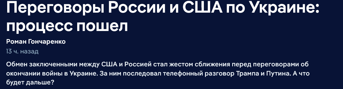 ...а судя по сегодняшним ночным мирным сигналам от России (в виде баллистики по Киеву) переговоры идут с большим прогрессом.
