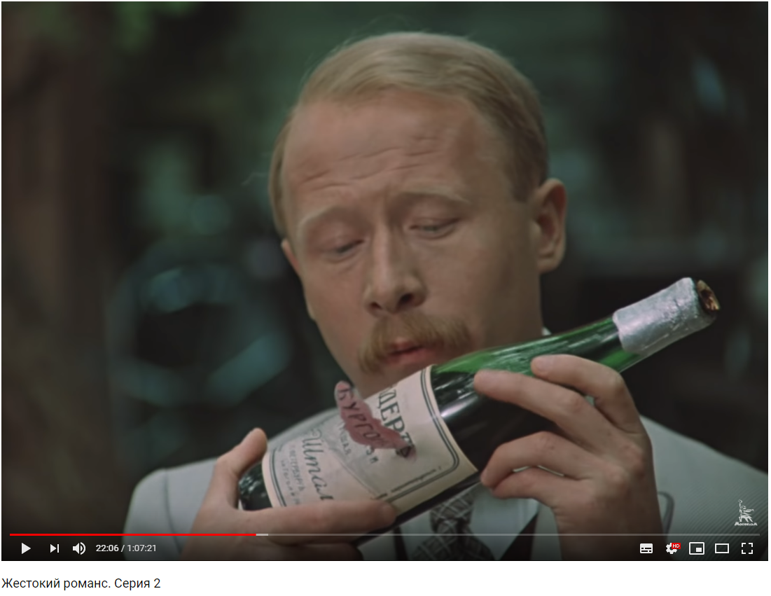 Сразу вспомнился эпизод с бургонским в "Жестоком романсе".