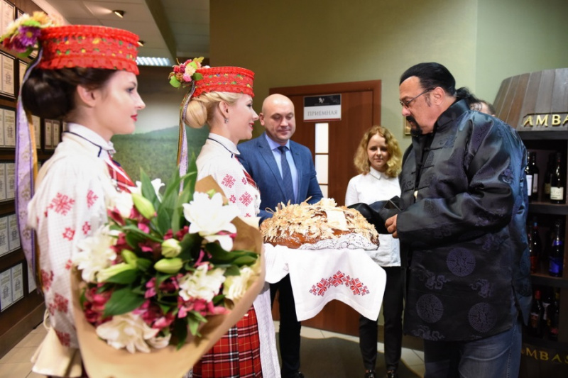 Известный американский актер, кинопродюсер, сценарист и кинорежиссер, а также музыкант и мастер боевых искусств Стивен Сигал посетил ЗАО «Минский завод виноградных вин» – предприятие, которое является крупнейшим производителем алкогольных напитков в Республике Беларусь. (Отсюда.)