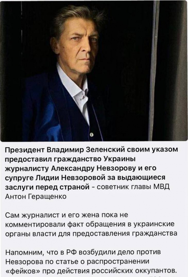 4. Невзоров выходит из гражданства РФ и приезжает в РФ по паспорту Украины.