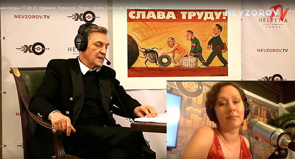 И как раз очень в тему пришел вопрос. Я на него отвечу. Он получастный. Вопрос: «Чем занимается сейчас ваш сын Александр Александрович Невзоров?» Я могу сказать, что мой сын Александр Александрович Невзоров занимается абсолютно тем же самым, чем Гундяев.