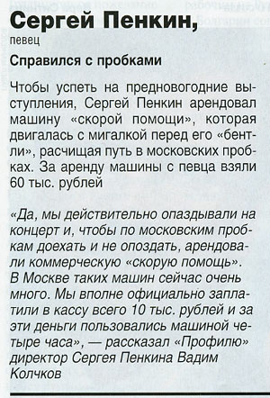 пенкин сам по себе (или кто-либо другой) не виноват в том, что в городе, где он зарабатывает деньги неотрегулирован дорожный поток и какие-то ... нехорошоие люди сдают напрокат "Скорую помощь". Он лишь сделал то, что ему было нужно. а мерзавцы не переведутся. никогда. причем не только в России