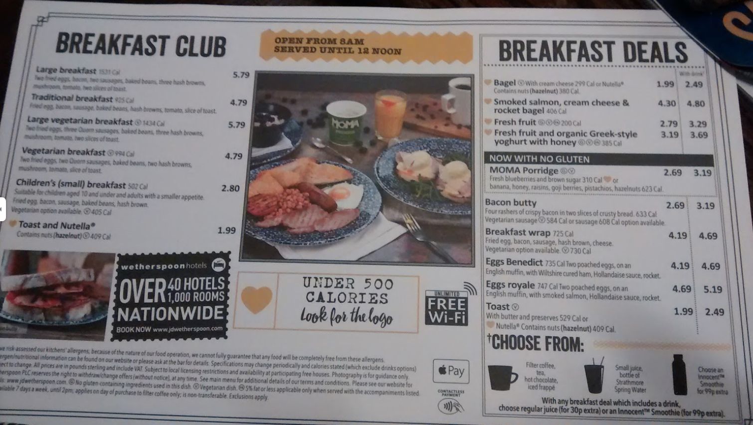 Давно там не был. Похоже, он больше не принадлежит Wetherspoon, но в любом случае фотография дает представление о ценах в пабах этой сети.