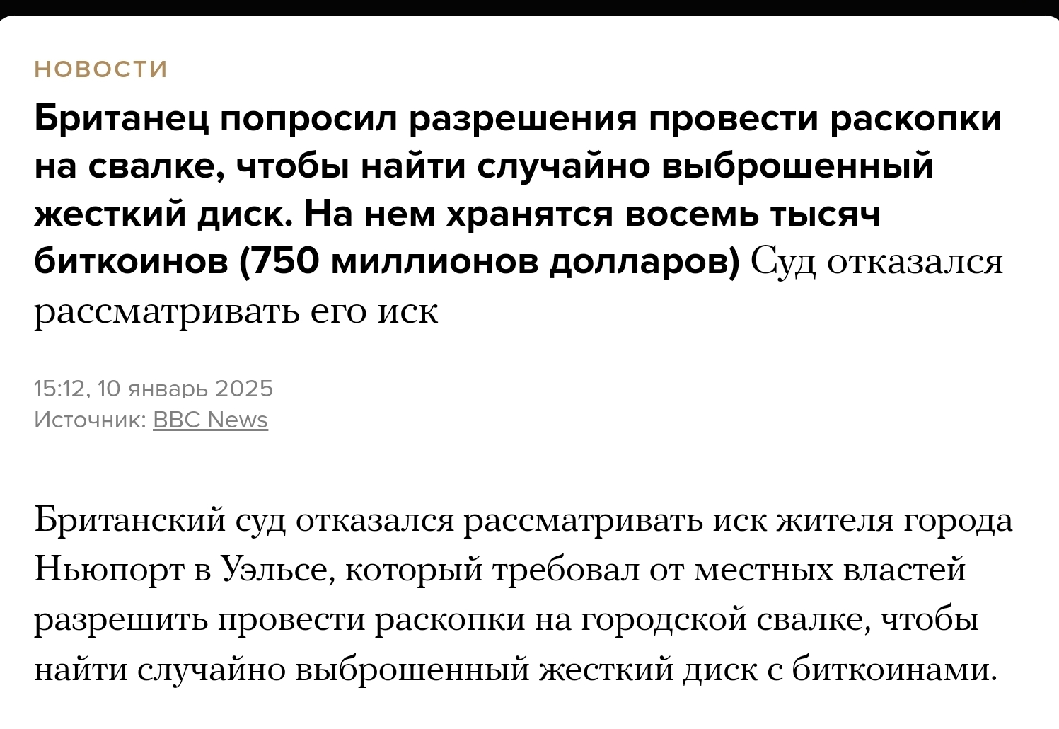 Британцу отказали в раскопках на мусорном полигоне (свалке), где находится случайно выброшенный жёсткий диск с 750 млн. долларов в биткоинах.