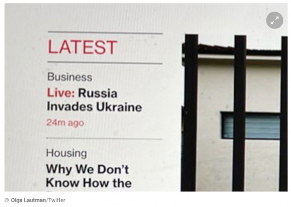 По словам Ольги Лаутман, российского аналитика, которая разместила скрин в Twitter, вводящий в заблуждение заголовок о российско-украинском конфликте оставался на главной странице Bloomberg в течение 30 минут. (Отсюда.)