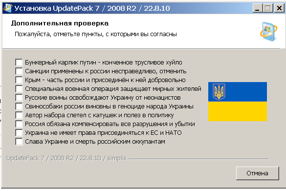 Кстати, UpdatePack при установке запускает викторину "докажи, что не москаль":
