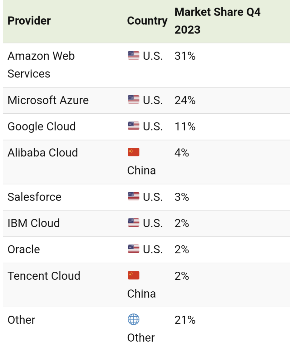 Да, крупняка 2 - AWS и Azure, и только потом с большим отставанием гугл и все остальные
