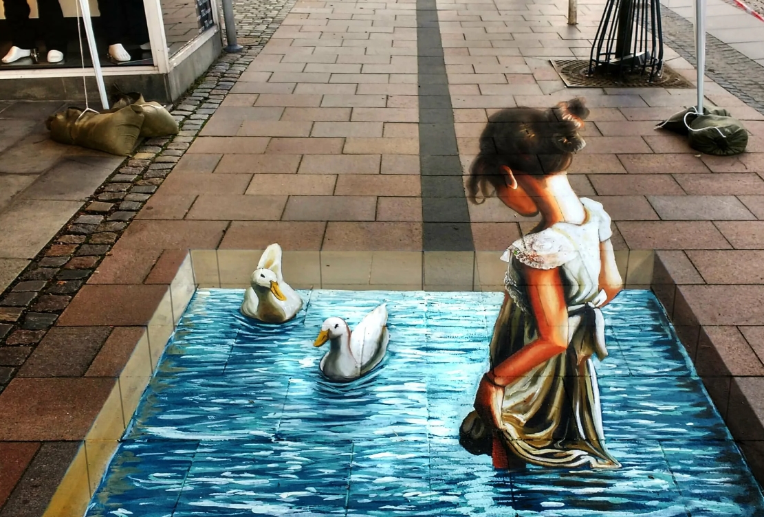 Есть уличная 3д графика, видимая только с одной точки. Этой точкой были кресла членов жюри.
