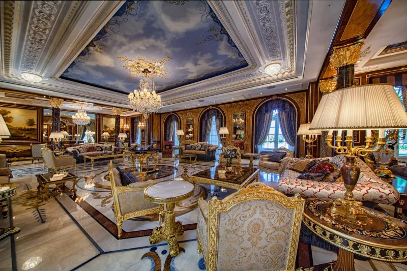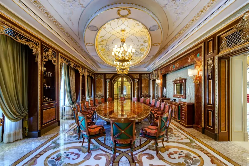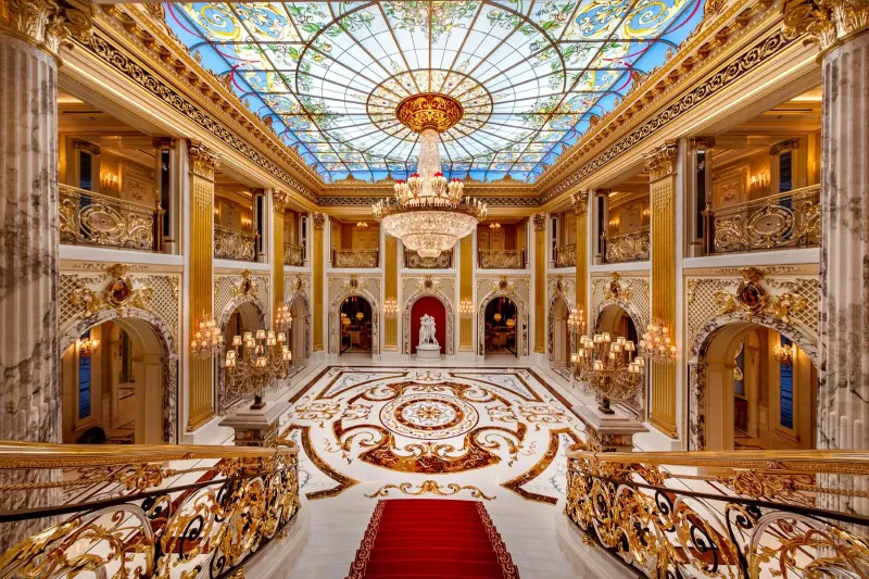 Там должно быть выделено помещение для самоубийств уборщиков. Количество завитушек, лепнины, ковров и полированных поверхностей, помноженных на квадратные метры, поражает.