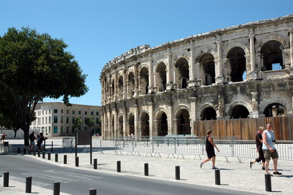 В городе Ниме есть старинный амфитеатр. Он огромный, хотя и не такой большой, как Колизей. Но зато, в отличие от Колизея, амфитеатр почти полностью сохранился (как внутри, так и снаружи). И там проводят различные концерты - в основном оперные.