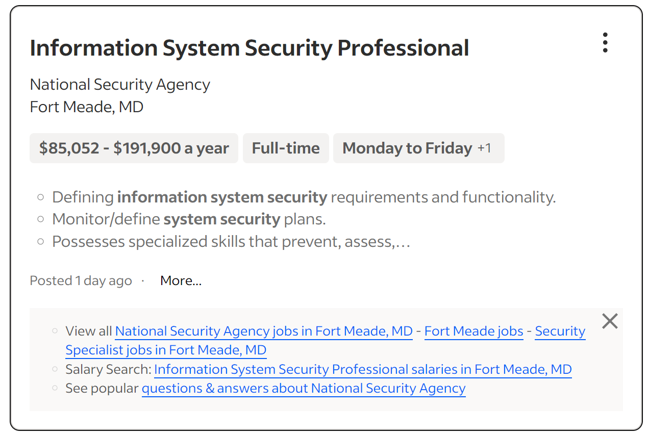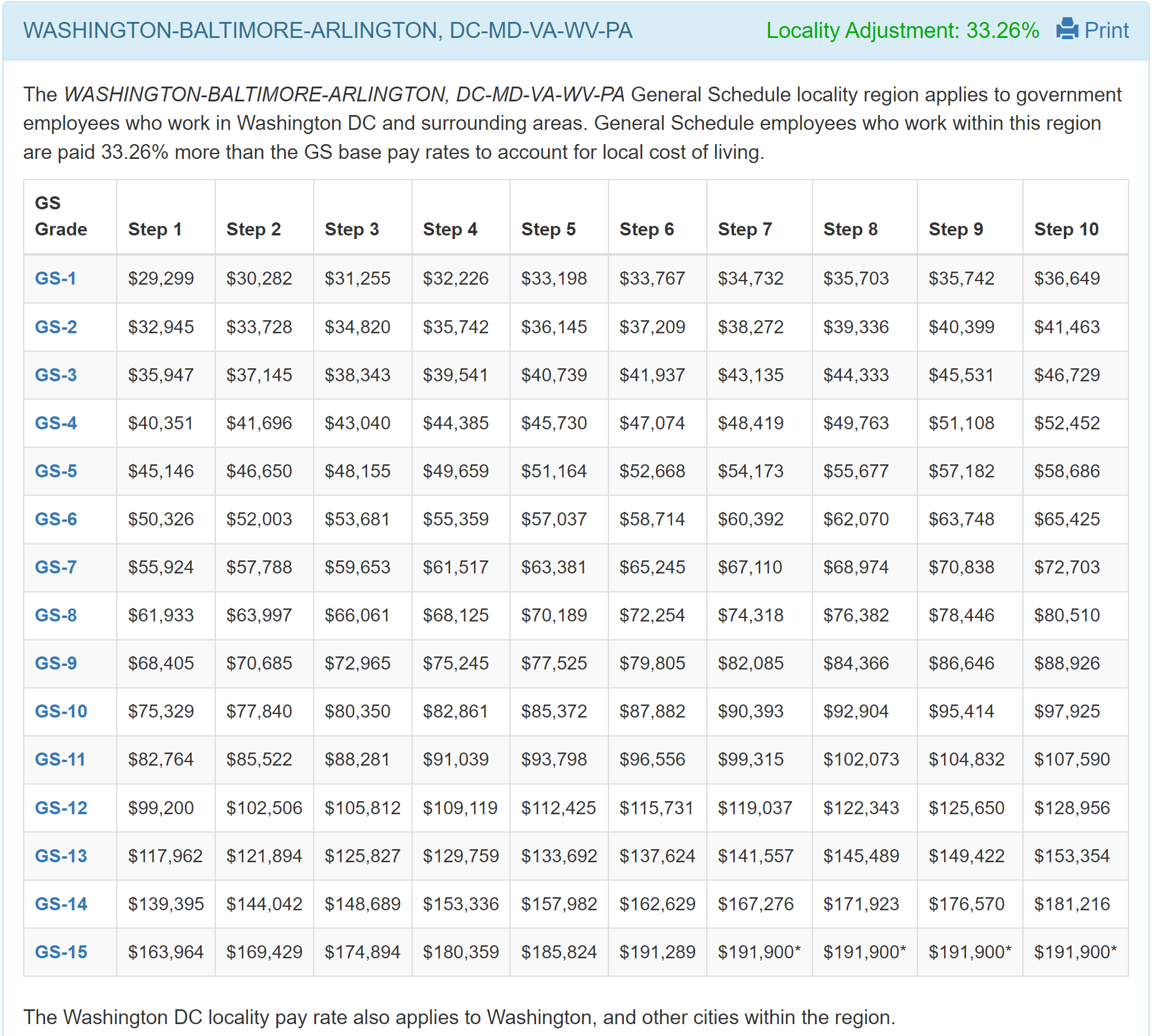 А у "федералов" совсем не лучше. Знакомому в трехбуквенном агентстве предлагали на старт зарплату значительно ниже медианной зарплаты для города, где предлагалось работать. На вопрос "э-э-э... это вообще что..." дали ссылку на ОФИЦИАЛЬНЫЕ зарплаты для федеральных сотрудников (чуть выше приведена достаточно свежая табличка с федеральными зарплатами).