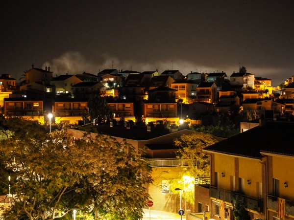 А потом просто попробовал сделать кадр ночью моим основным фотоаппаратом. Без специальных режимов, просто на программном автомате. Никаких фулфреймов: темная ночь, кроп 2,0 (4/3), ISO 3200, диафрагма 2,8, выдержка 0,4s. С рук. (Кликабельно.)