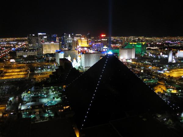 Вчера была нереальная туса скромная вечеринка на 65 этаже Mandalay Bay. Оттуда наконец-то заснял "Луксор" с высоты.