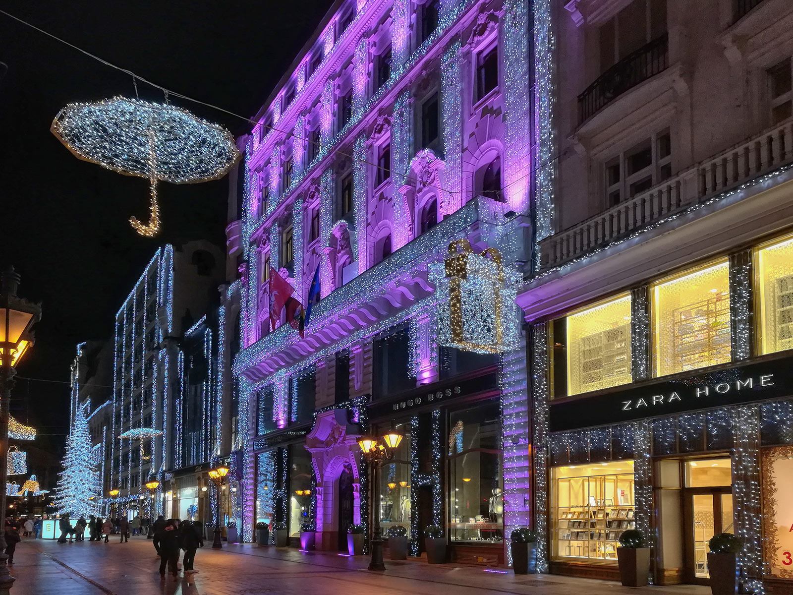 Но ведь это может использовать любой. Вот, например, лично я теперь без микроштативчика-триподика-селфипалки 3 в 1 в путешествия не езжу. Оно в сложенном виде в кармане куртки помещается, раскладывается в одно движение. А теперь следите за руками. Жена берет нашу зеркалку Никон, я беру телефон. И мы разделяем полномочия. Днем с приближением снимает Никон, на ширик с большим количеством планов и объектов прекрасно справляется Хуавей. Но когда приходит ночь, Никон прячется и не высовывается, поскольку вот такой режим позволяет показать ночной город во всей красоте. А Никон что? Штатив к нему нужен большой, брекетинг проигрывает вот такой интелектуальной склейке по фотошироте тонов....