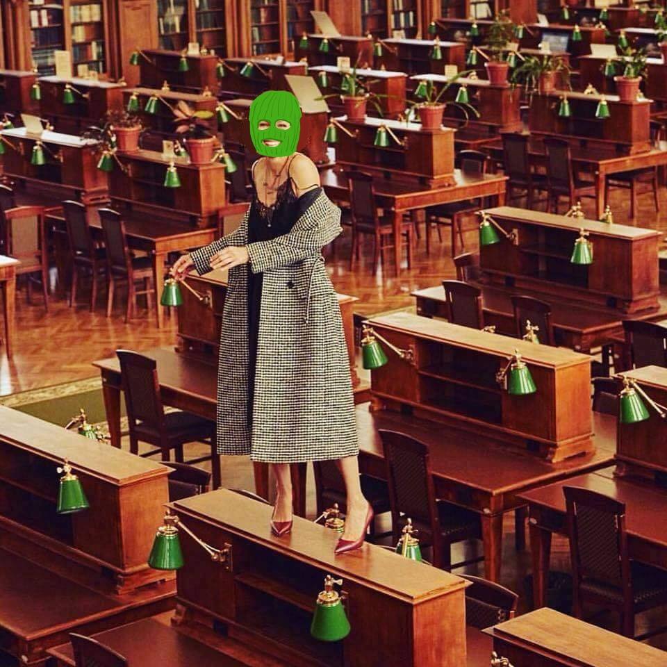 Но из-за чего такой баттхёрт? Ногами на стол встала? Это, согласно этике данного этноса и эпохи, так же плохо, как бросить на пол ХЛЕБ? Это касается любых столов или только столов в библиотеке? Кстати, а колбасу на пол бросать - разрешается?