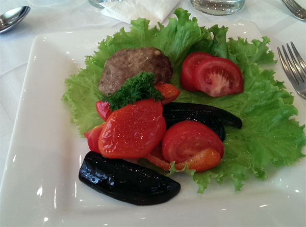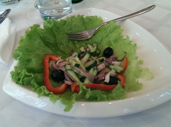 Наконец еще через 15 минут принесли наши салаты. Они представляли собой смесь порезанного на обычном кухонном комбайне языка с огурцом, и если это блюдо готовилось больше двух минут, то я - Фредди Меркьюри.