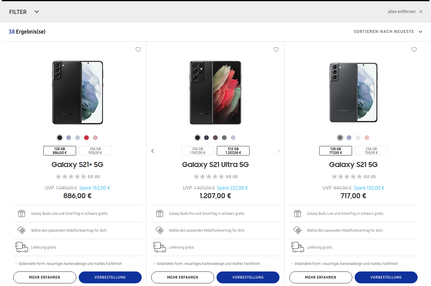 • S21 5G на старте – от €849 (за версию на 128Гб, при лучших характеристиках по ряду параметров).