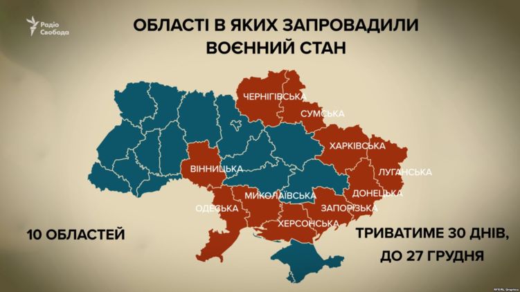 Ээээ. Давно это Черниговская, Винницкая и Сумская области стали "нелояльными"? И какой смысл вводить военное положение в Крыму, если он оккупирован?