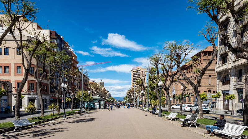Приехали, сразу вышли на улицу Rambla Nova - это большая пешеходная улица в центре Таррагоны, почти такая же, как La Rambla в Барселоне, но другая.
