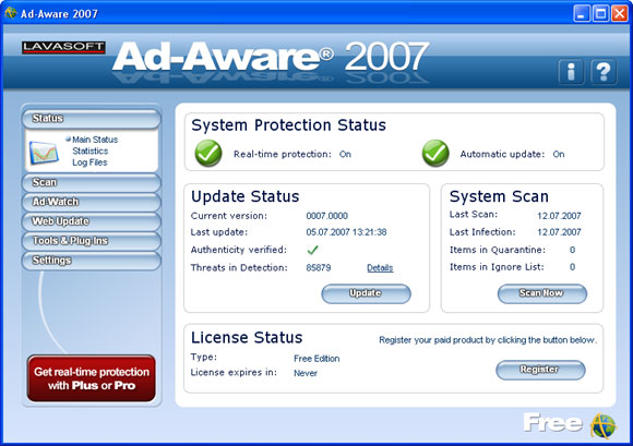 AdAware 2007 Free - пробовал. Не сложилось у меня с этой программой. Перешёл на её аналог: a - squared free. Ну, и для пущей надёжности, конечно, Спайбот.