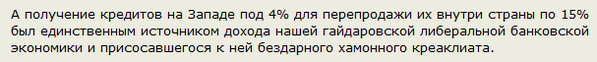 ну щас-то в ЦБ берут под 50%, а выдают населению по-прежнему под 15%, в ущерб себе, лишь бы подальше от гайдаровского наследия