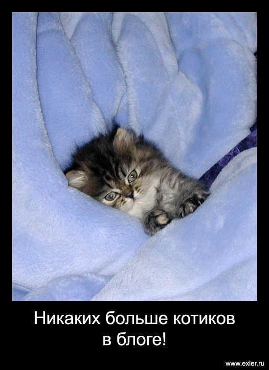 Мы с котом Бубликом основали новое общественное движение за запрещение публикации котиков в блогах! Освободим наши блоги от этих чертовых мимимишек! Присоединяйтесь к нашему движению, распространяйте плакат движения!