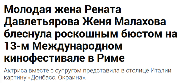 Главные новости о новом российском фильме "Донбасс. Окраина". Фильм военный. Как утверждает Давлетьяров, вне политики (интересно, как такой фильм может быть "вне политики"?), так что как тут роскошным бюстом-то не блеснуть, правильно?