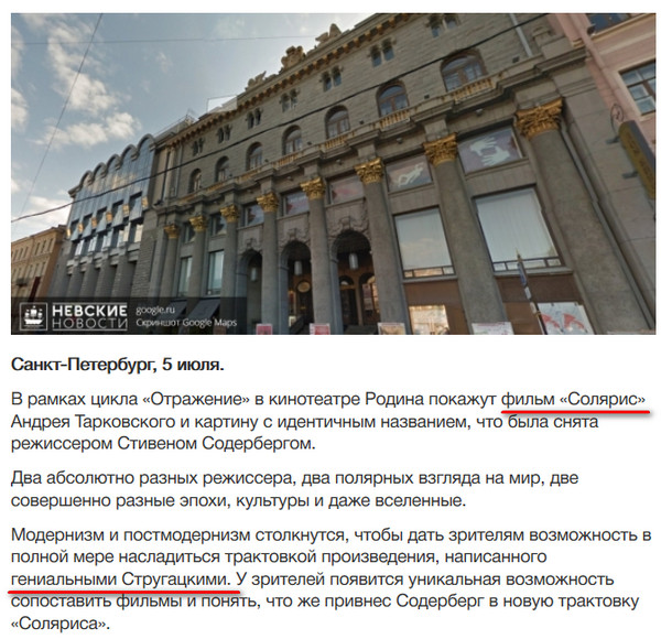 dees: Ну Тарковский действительно снял свою версию Соляриса, так что Сталкер тут ни при чём. А вот со Стругацкими да... промашка вышла...