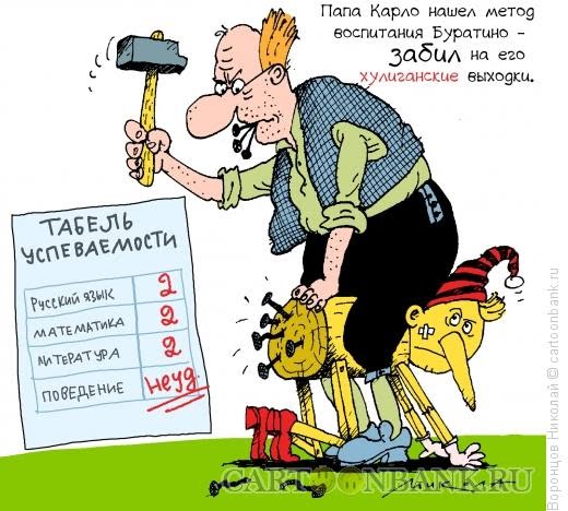 Ну, допустим, первоисточник - старая и смешная в свое время карикатура. Но, кажется, подобньій метод воспитания давно перестал считаться чем-то приличньім.