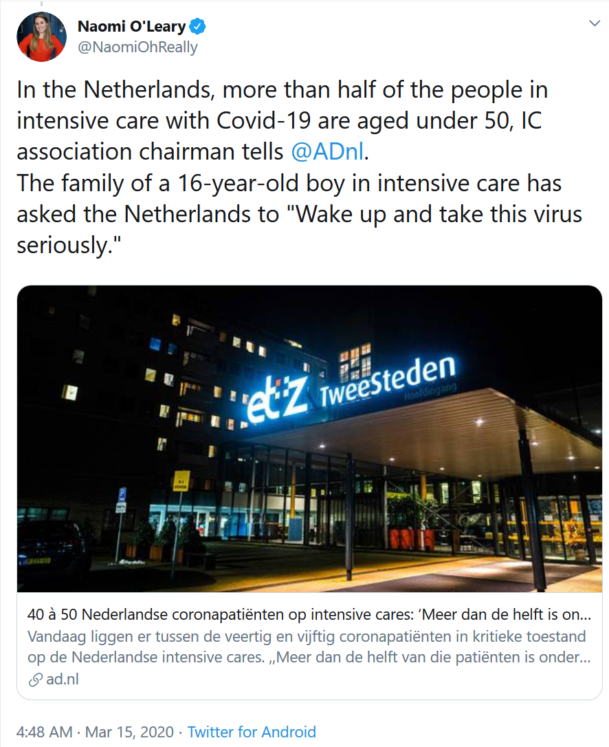 "С чисто экономической точки зрения, коронавирус окажет позитивное влияние, в наибольшем процентном соотношении выбраковывая престарелых иждивенцев". (c) журналист "Телеграф" Эдвард Пентин twitter.com