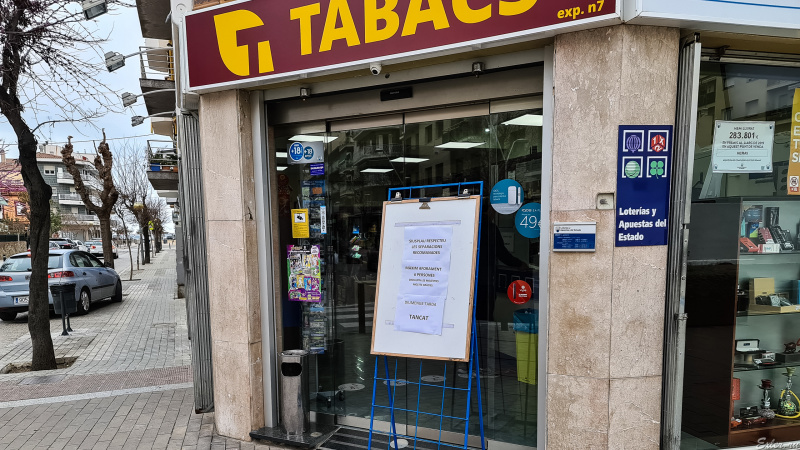 У некоторых заведений висят объявления с просьбой заходить не более какого-то количества людей - в данном случае не больше 6. При этом это очень небольшая табачная лавка. В большом магазине висел плакат с просьбой заходить не более 2 человек.