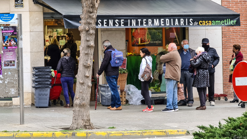 В популярный магазин овощи-фрукты стоит очередь на улице, чтобы внутри народ не скапливался. Оно и к лучшему, там такие узкие проходы, что в магазине все время толкучка.