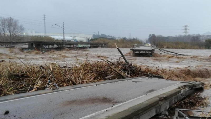 Ураган "Глория" в Испании понаделал делов. В наших краях срезало автомобильный и железнодорожный мост.