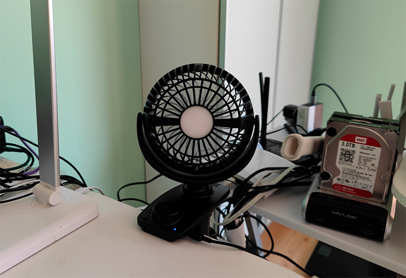 В прошлом году читатель посоветовал вентилятор Cavn F170, который мне очень понравился: эффективный, очень тихий, скорость вращения плавно регулируется в широком диапазоне, вентилятор может вращаться туда-сюда, обдувая все кругом, есть аккумулятор и подставка-прищепка - в общем, класс, пользовался с большим удовольствием, а то я не люблю днем сидеть с кондиционером, хочется свежего воздуха. Для самой жары также пришлось купить вентилятор побольше и помощнее, но этот маленький продолжал использовать.